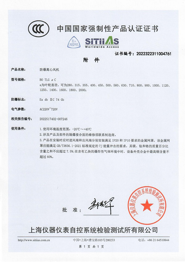 公司通过iOS9001及防爆风机等多个国家权威认定证书,并已通过欧盟CE认证积极开拓海外市场,把中国制造及中国品牌推向全世界。